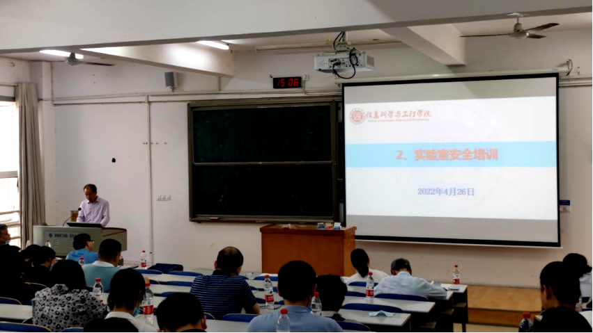 校园网讯 4月26日下午,信息学院开展实验室安全专题培训及现场检查工作。院长童耀南主持,副院长严权峰主讲,学院全体教职工参会。会后,院党委书记甘向阳带队开展实验室安全现场检查。