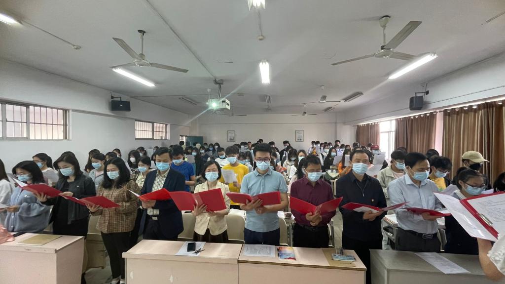 校园网讯 为庆祝建团 100 周年,喜迎党的二十大胜利召开,进一步加强大学生爱国主义教育,培育大学生家国情怀,增强大学生文化自信,促进优良学风校风建设。在五四青年节来临之际,数学学院开展“青春献礼二十大,强国有我新征程——大学生课前三分钟爱国朗读(第五季)”活动启动仪式。党委学工部副部长毛伟、心健中心主任李一飞、数学学院党委书记孙明保、院长周小强、副书记齐亮菲、副院长李松华、副院长黎丽梅、副院长罗德仁与学生一起朗诵经典篇目《少年中国说》。