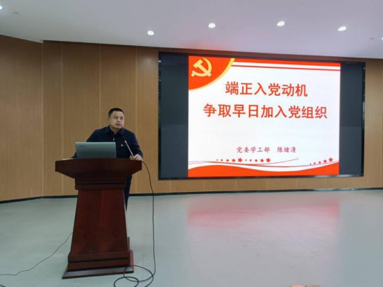 陈绪清从三个方面对“端正入党动机,争取早日入党”进行了生动阐述。一是端正入党动机的重要性,二是端正入党动机的基本要求,三是以实际行动争取早日加入党组织。随后,他引用习近平总书记在中国人民大学考察时的重要讲话,希望所有入党积极分子不负韶华,不负时代,不负人民,在青春的赛道上收获成长与快乐。