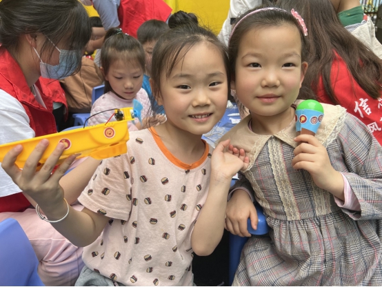 校园网讯 5月17日,信息学院爱·雏鸟志愿服务团队到学院路幼儿园开展志愿活动,和小朋友们一起手工制作玩具。