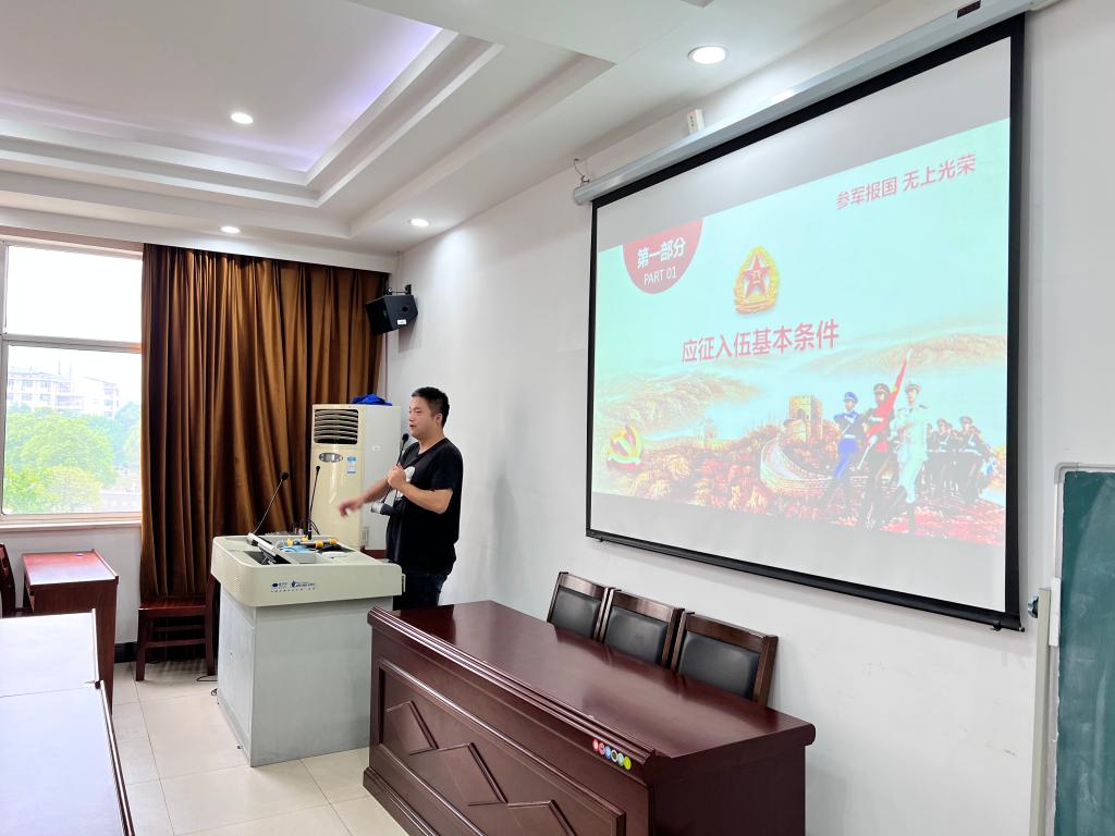 校园网讯 5月18日下午,经管学院于8号教学楼301会议室举行毕业生征兵专题宣讲动员会。会议由学院征兵专干易萧主持,18级辅导员单芳及18级部分有意向参军入伍的同学参会。