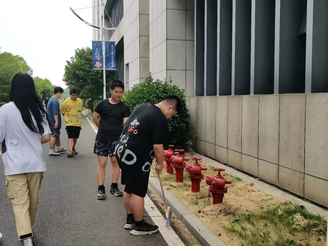 为迎接即将到来的“湖南省大学生运动会”,弘扬劳动精神。8月30日下午三点,经管学院组织预备党员、入党积极分子、团学干部、21级全体同学对8号教学楼、图书馆周边及阳光大草坪进行了卫生清理。