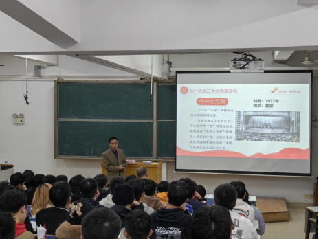 2022年,党的二十大根据理论创新和实践创新需要对党章进行修改。张国云结合自身教学经验和亲身经历,从党内法规、党章的发展历程、党章的修改与主要内容等方面展开系统讲述,带领在场师生从党章的演变看党和国家的发展,要求同学们课后自主阅读二十大党章原文,并深入学习和体会“什么是中国式现代化”。