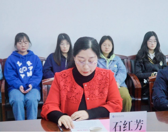 会议第一项,由石红芳宣读《关于授予吴美玉同学“校长奖学金”的决定》,她对吴美玉同学捐献造血干细胞的行为做出充分肯定,并希望她能够再接再厉,发挥好先锋模范作用。她还号召全校同学以吴美玉同学为榜样,弘扬奉献、友爱、互助、进步的志愿精神,努力将自己培养成德、智、体、美、劳全面发展的社会主义建设者和接班人。