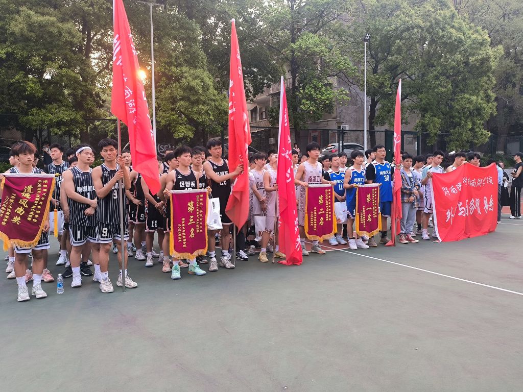 四月似火般的骄阳抵挡不了篮球场上青春少年的澎湃与激情。赛场上,队员们精准的传球、快速的抢断、漂亮的外线远投,赢得场内外阵阵喝彩。来自五个系的2022级新生组成的篮球队历经五天十场紧张激烈的角逐,于今日完美收官。闭幕式上,本次“迎新杯”男子篮球赛裁判长佟鑫老师代表比赛组委会宣布比赛成绩。“迎新杯”男子篮球赛的桂冠被文法系代表队摘取,工程系代表队紧随其后揽下银牌,经管系代表队斩获铜牌,机电系、外贸系代表队获体育道德风尚奖。