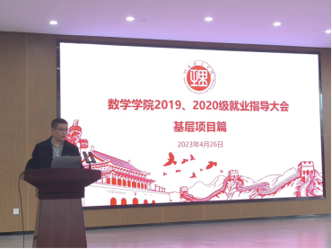 校园网讯 4月26日下午四点,数学学院于17118召开就业指导大会,本次会议由数学学院就业专干佘宁远主持,数学学院党委副书记齐亮菲、2020级辅导员徐笑天、2022级辅导员赵馨出席,2019级、2020级部分学生参加。
