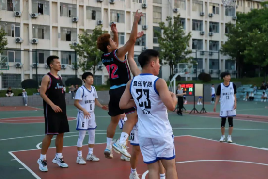 首节比赛,我院队员有条不紊地组织进攻,利用外线传导球,频频找到出手机会,由苟利民、胡远鹏分别命中三分球,早早确立了领先优势。在防守端,我院球员王子昂利用身高臂长的优势,屡次送出盖帽,极大提振了球员的士气,震慑了对方的内线进攻。
