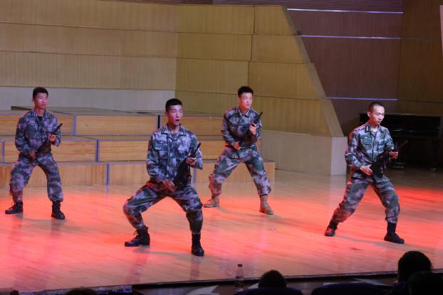 本场音乐会以军旅生活为主题,由序幕和“边疆就是我的家”、“烽烟滚滚唱英雄”、“他沉默却铭刻坚强”、“红色做底色,忠诚是信仰”四幕共同组成,音乐学院部分学生、全院退役复学青年及校民兵连联合出演。舞台上,他们用铿锵的歌声旋律唱响强军梦,用刚劲的战术表演激扬报国志,用热血的舞蹈步伐迈向新征程,一帧一幕都传递着对军营的热爱,浓厚的情绪深深感染了现场观众。