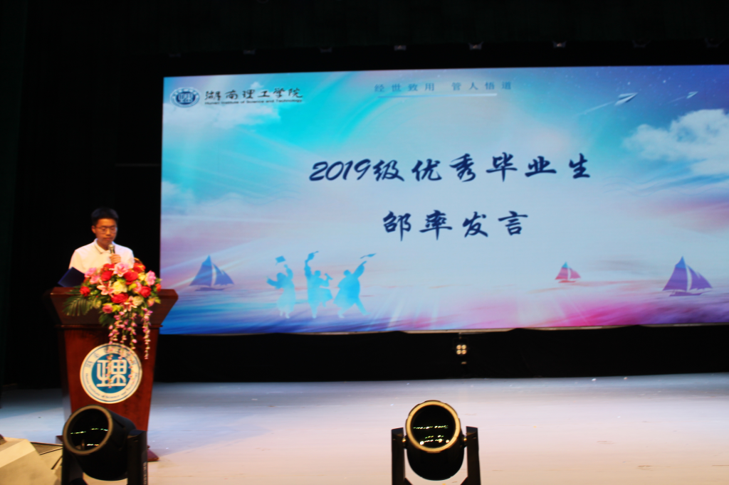 接着,19级班主任代表何姣老师为毕业生们送上了饱含真情的勉励与祝福,希望大家能在未来的道路上保持初心和信念,不断学习和积累,踔厉奋发、勇毅前行。19级毕业生代表邵率学长总结了自己的四年大学生活,同时表达了对同窗的美好祝愿。