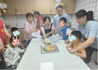 此次活动分为四个部分,分别是实验类,手工类,烘焙类和观影类。孩子们首先体验的是科学小实验。志愿者身穿红色小马甲,陪伴并帮助小朋友们一起完成各个实验,这些奇妙的实验现象激发了小朋友们对科学的好奇心和探索欲。实验结束后,小朋友们马上又踏上了手工制作和烘焙之旅,可爱的手工作品和美味的披萨都一一从他们手中诞生。最后,家长们陪伴孩子在“专属电影院”感受看电影的氛围和规则,提高孩子们的注意力。活动结束后,数学学院的志愿者们为这些小朋友们送上真挚的节日祝福和悉心准备的小礼品。