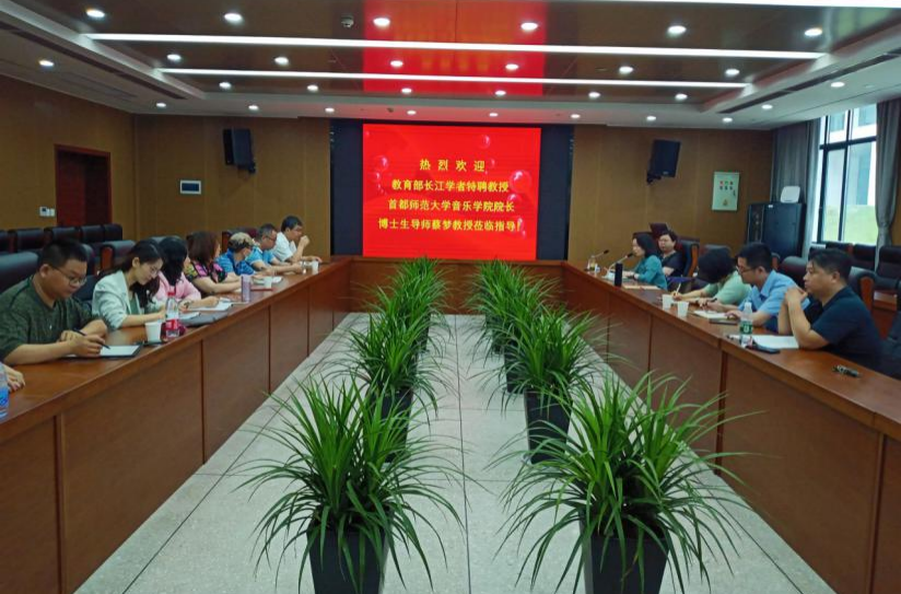 校园网讯 6月8日,音乐学院邀请到了首都师范大学教授、国务院学位委员会学科评议组成员、“全国艺术教指委”音乐教育专业核心课程教学指导组成员、教育部“长江学者”特聘教授、蔡梦莅临音乐学院举办讲座。校研究生工作部部长周从山、副部长吴健辉、我院班子成员、硕导以及艺术硕士任课教师参加学习交流。