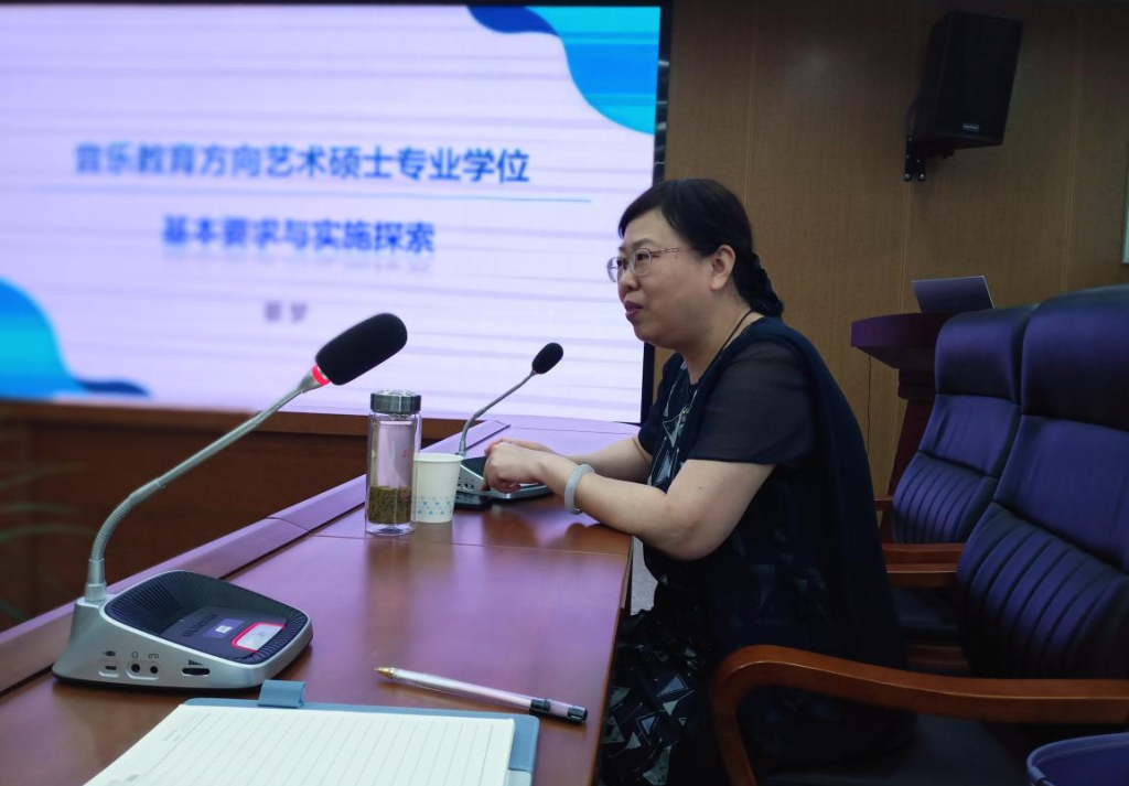 此外,蔡梦教授从课程设置、教学内容、教学方法等方面,对音乐教育专业学位的课程体系进行了详细讲解。她指出,课程设置应该依据专业特点和市场需求,注重理论与实践的结合,强化专业能力的培养;教学方法也应该以多元化、创新性为特色,提高教学效果;注重培养音乐教育专业的实践能力和创新能力,彰显音乐教育专业特色。