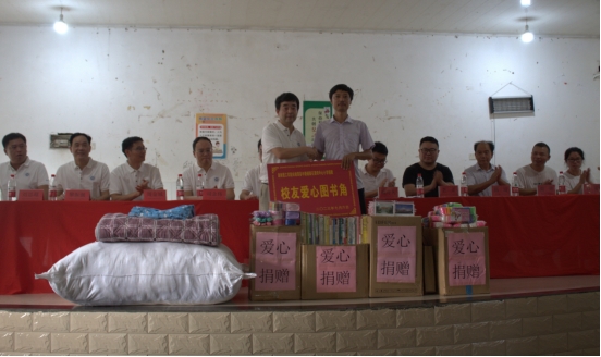 在此次活动中,经管学院针对目前湘潭县中路铺镇石潭坝中心小学的办学困境,与校方和留守儿童亲切交流,关心留守儿童学习生活情况,同时在湘潭县中路铺镇石潭坝中心小学开展捐赠“爱心图书角”活动,为小朋友们赠送书籍、文具等礼包,精准对接孩子需求。