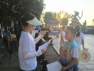校园欺凌普法进广场过程,主要包括发放宣传单、现场咨询、个体访谈等环节。“我看到同学遇到了校园欺凌,我该怎么帮他?”“小孩子打闹一下,属于校园欺凌吗?”“遇到了校园欺凌,小孩不敢跟我们家长说,我该怎么做?”虽然顶着近40度高温,大家你一言、我一语,志愿者与参与人员互动亲切而热烈。