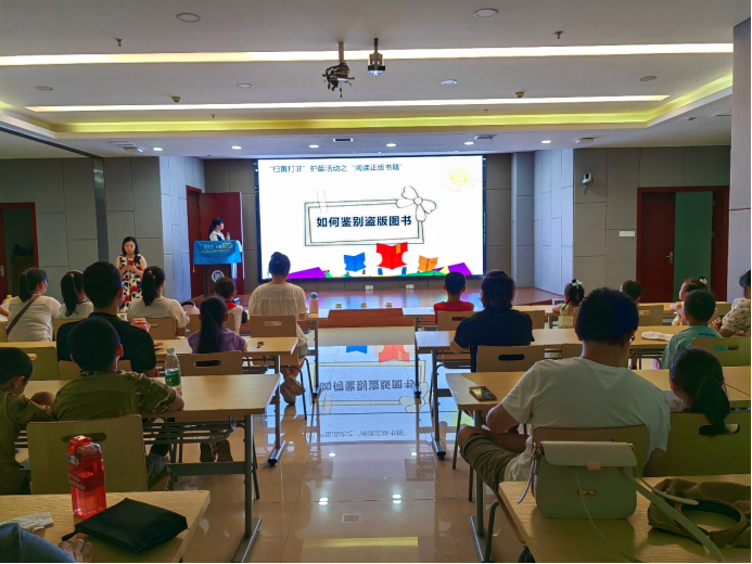 图书馆党支部委员胡建红老师为大家介绍“如何鉴别盗版图书”,告诉大家从看图书的外观、纸张、版权页、防伪标志、内容、价格、闻气味等方面去鉴别盗版书,强调了盗版书的危害,号召大家尊重知识产权,读好书。