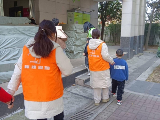 志愿者们陪孩子们在户外活动