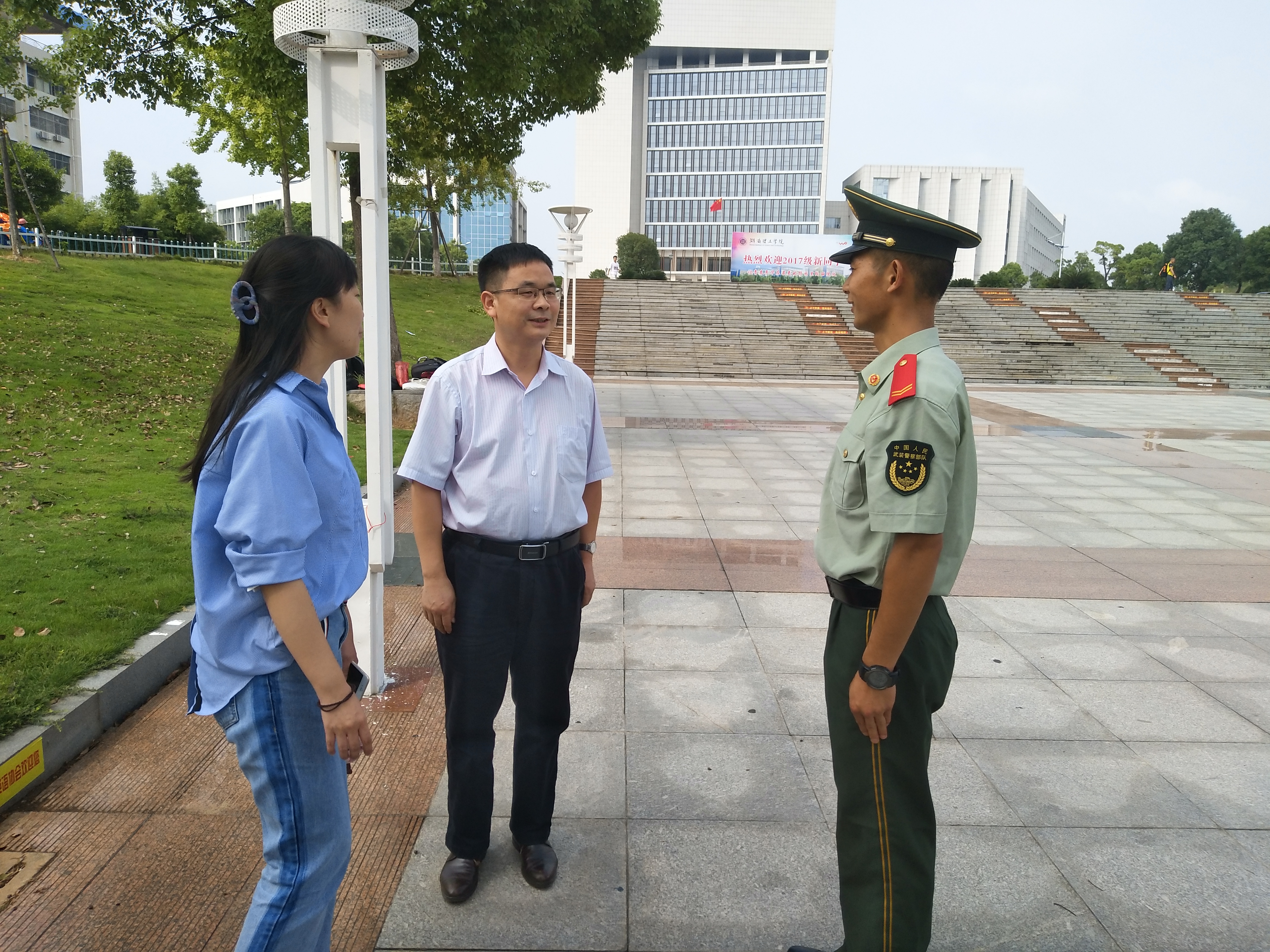 学院负责人向付出辛勤劳动的两位教官表示感谢,并向教官们询问受训学生的军训状态、身体状况和训练成果。(政法学院 学生通讯员/段晓敏 魏永玺)