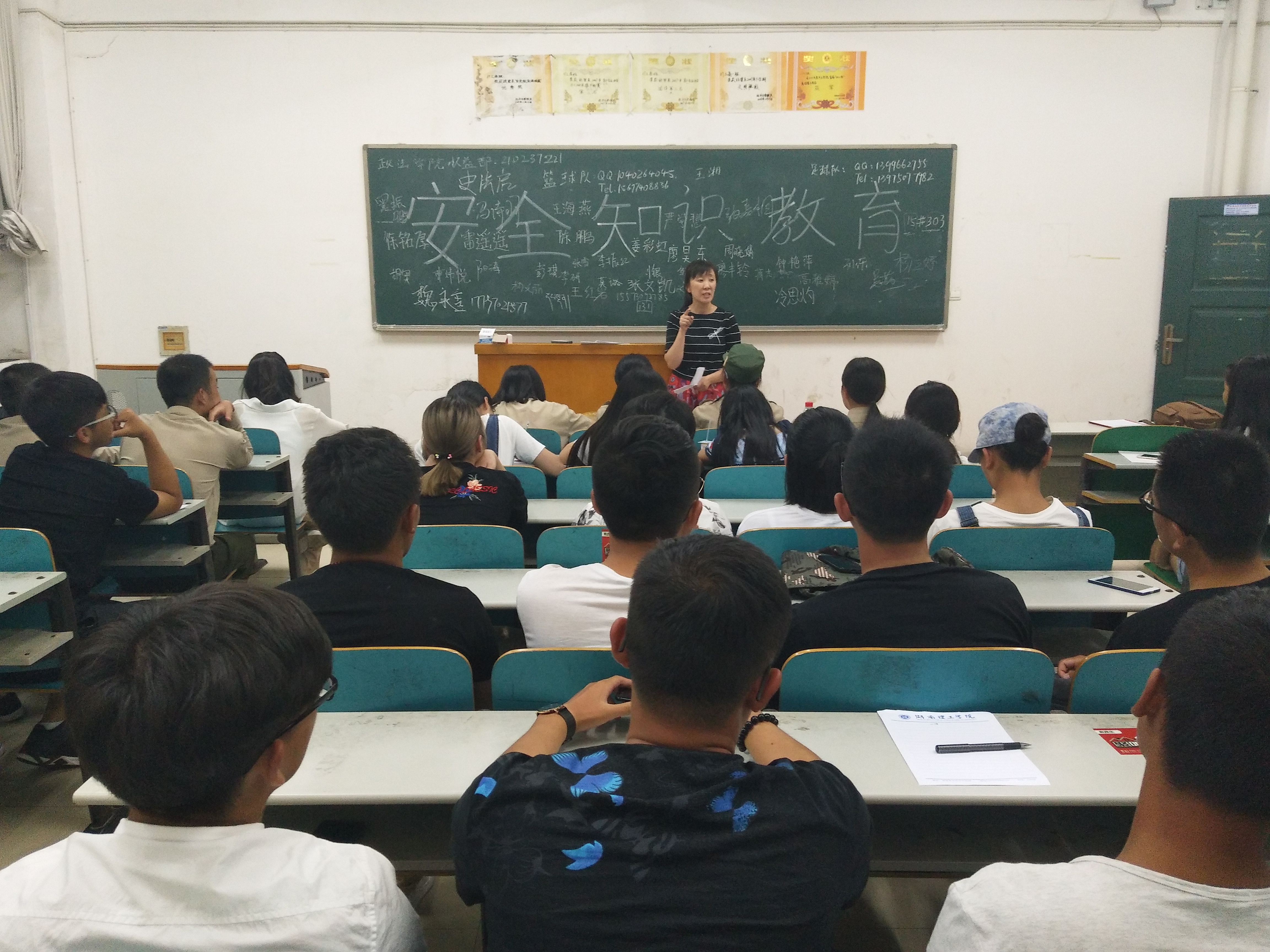 校园网讯9月12日晚,政法学院在15栋教学楼2017级各班自习室开展了系列安全教育活动。政法学院党总支负责人、新生辅导员以及全体班主任助理和2017级全体新生参加此次活动。