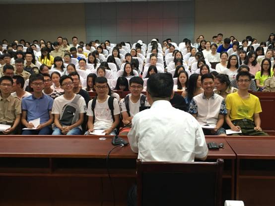 针对当前可能对大学生带来影响的有关问题,如网络安全与网络平台涉法涉规、校园贷款、传销欺骗、不良交友、恋情纠葛、女生安全、求职安全、学校和专业认同缺乏、考试舞弊、过度饮酒等,刘淳松以案例形式给新同学进行了详尽分析。他特别强调,在恋情问题上,广大女生定要守住基本底线、把握一份矜持、请勿预支青春。