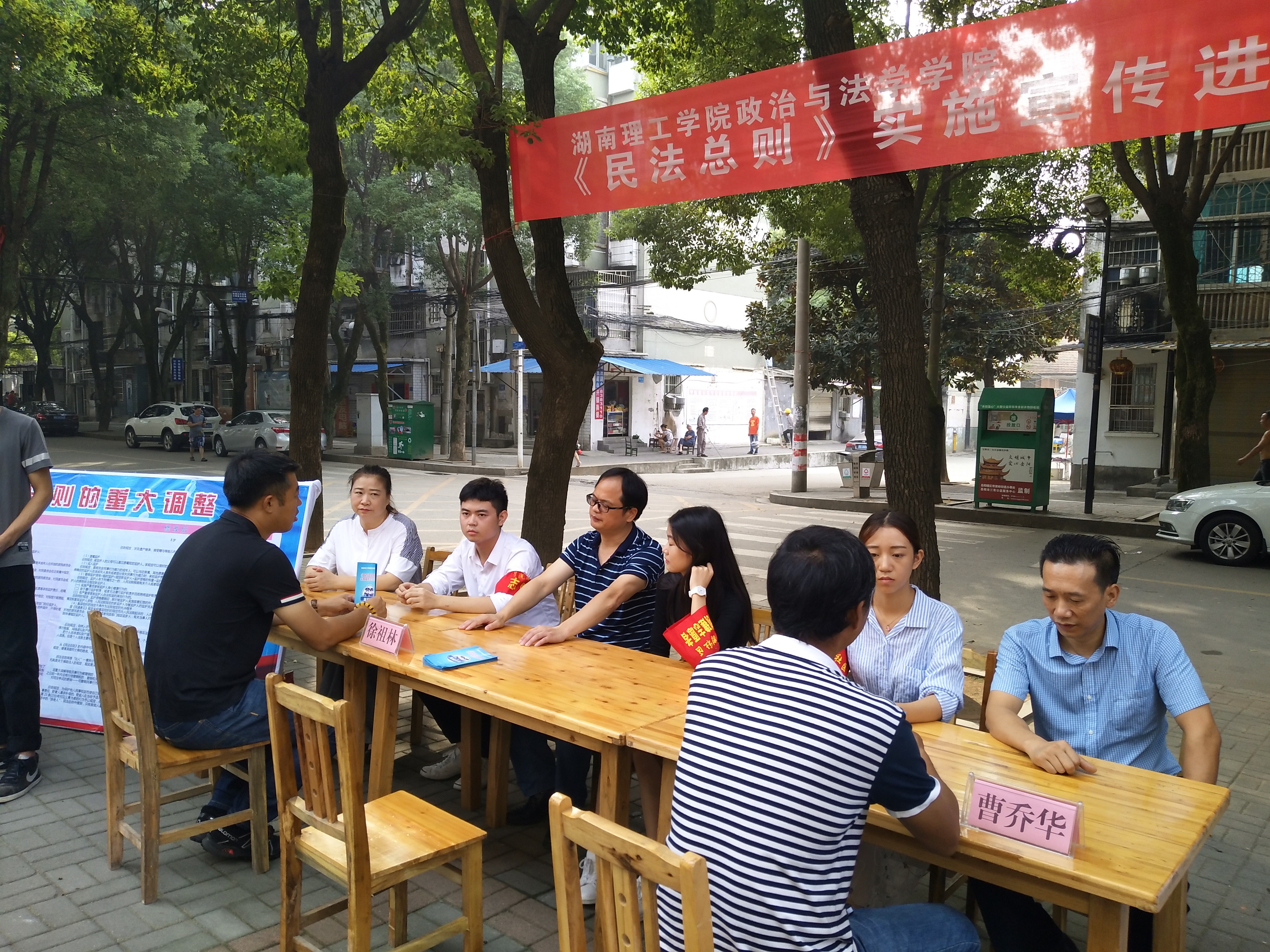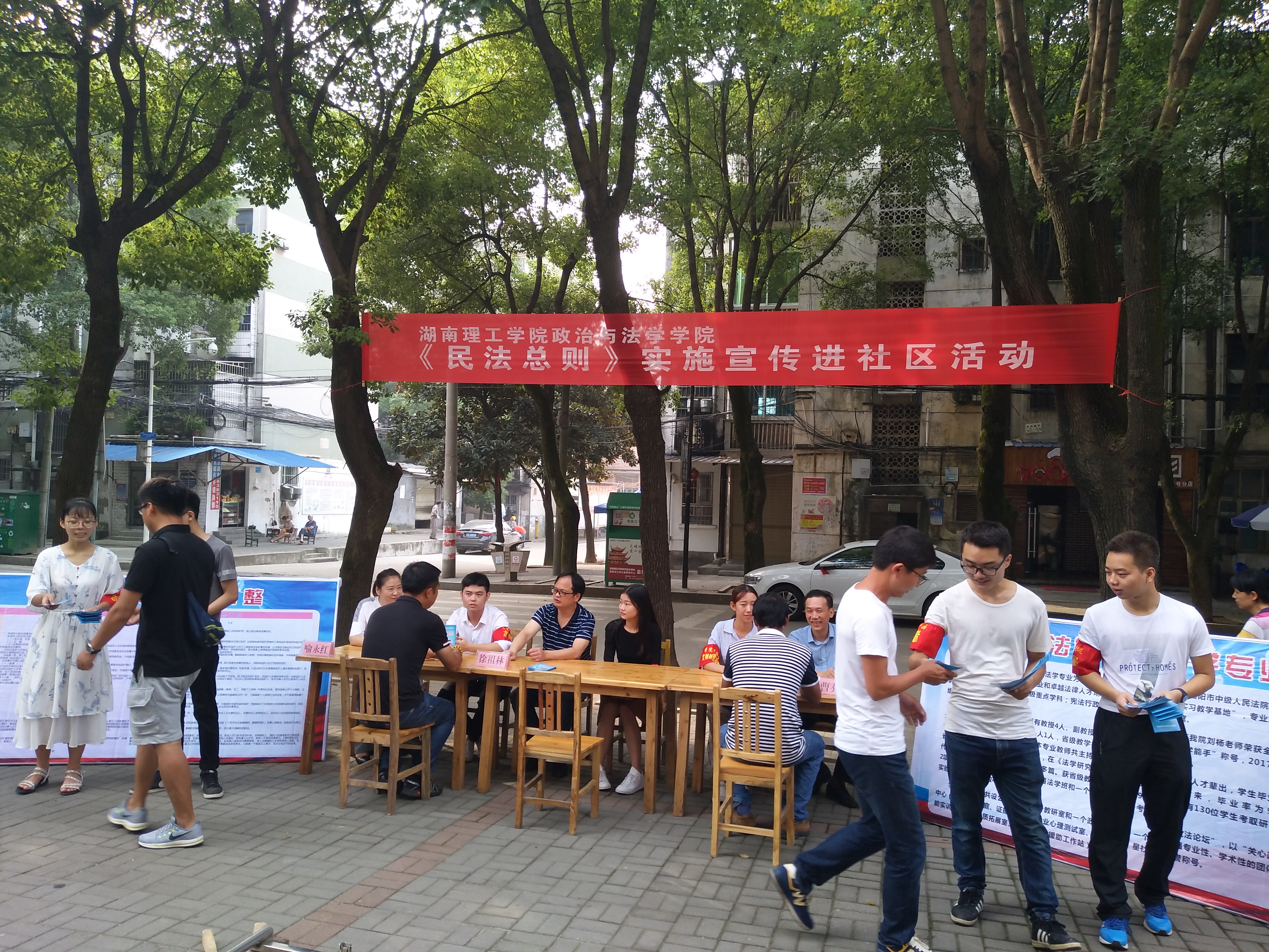 校园网讯 关系人民群众切身利益的《民法总则》即将于2017年10月1日起施行。为了让广大市民学好、用好这部法律,9月25日上午,政法学院在岳阳市岳阳楼区学院路社区开展了《民法总则》实施宣传进社区活动。政法学院党总支副书记石蕙、法学教师喻永红、徐祖林、曹乔华以及学院法学专业部分学生参加了此次活动。
