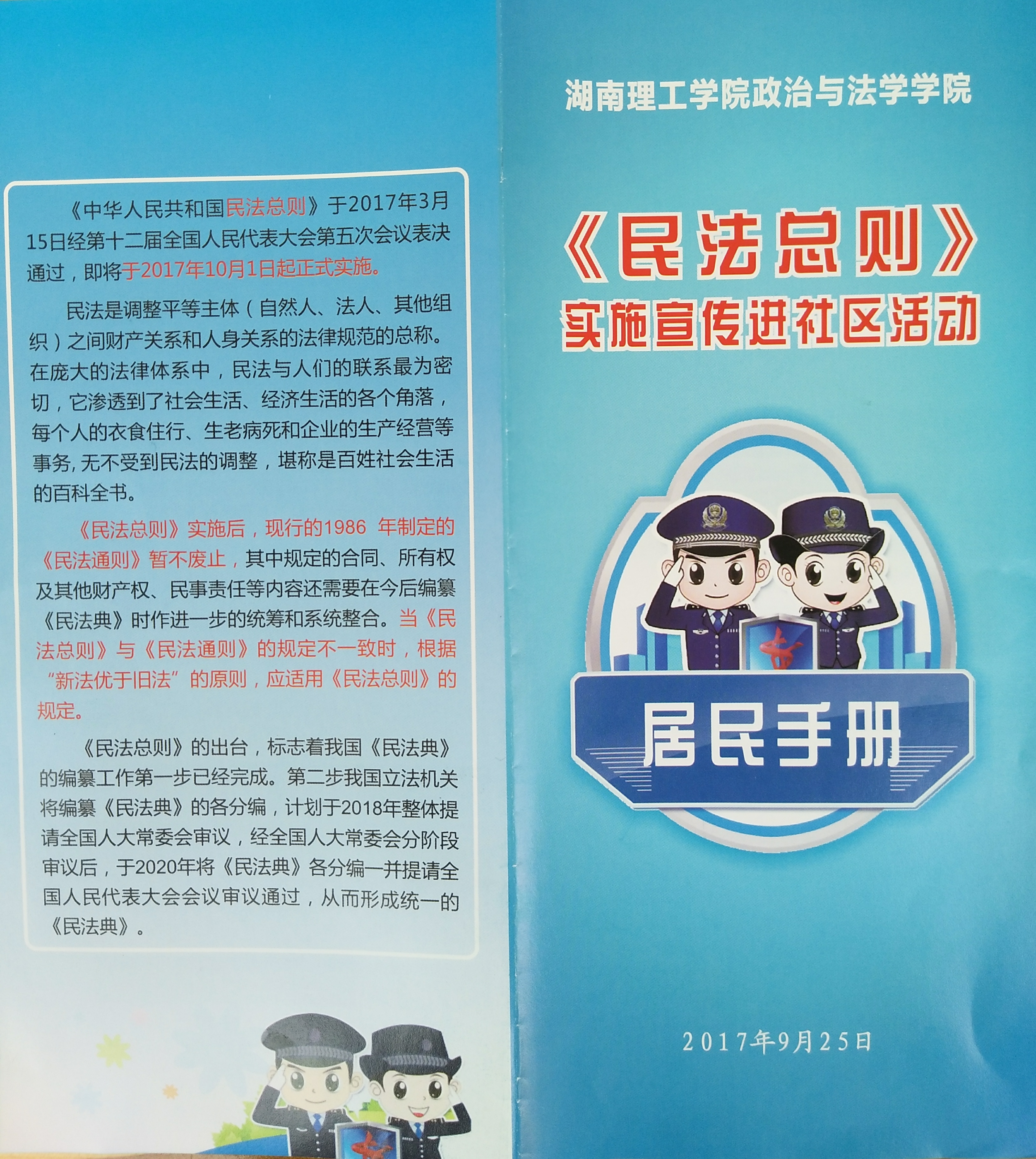 政法学院开展《民法总则》实施宣传进社区活动