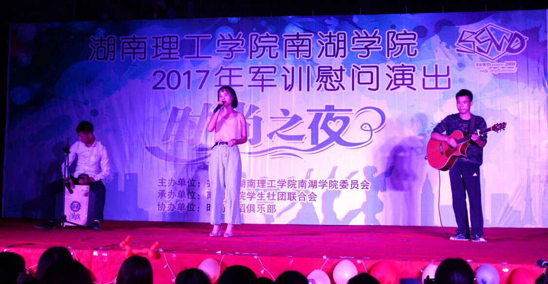 校园网讯 9月22日晚,秋高气爽,星光闪烁。南湖学院2017年“时尚之夜”新生军训慰问演出在北院田径场隆重举行,南湖学院相关负责人、团总支书记、新生辅导员、院团学会、学社联全部干部、带训教官及2017级1400余名新生参加。