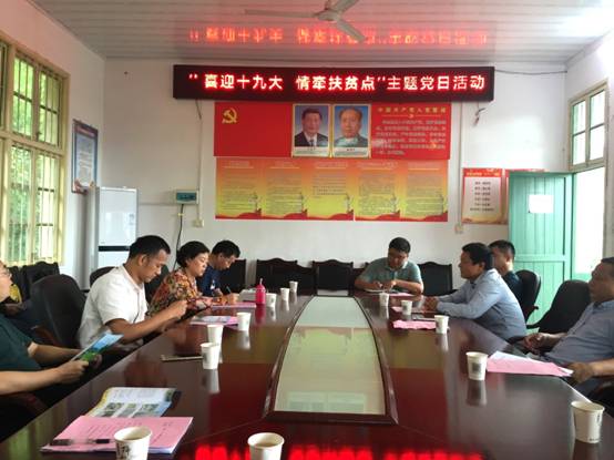 上午10点半,师生党员共十五人,冒着小雨驱车近三个小时达到淡江村,全体党员一下车就积极投入主题学习活动,在村部会议室详细听取了村支书和扶贫工作队的关于该村精准扶贫的情况介绍,认真学习了《中共中央 国务院关于打赢脱贫攻坚战的决定》《湖南省"十三五"脱贫攻坚规划》,并做了积极发言和热烈讨论;随后,大家深入精准扶贫结对帮扶贫困户住所开展走访和慰问,实地参观了学校扶贫点,与老百姓面对面交流,实打实解决问题,听取了解农村真实情况。
