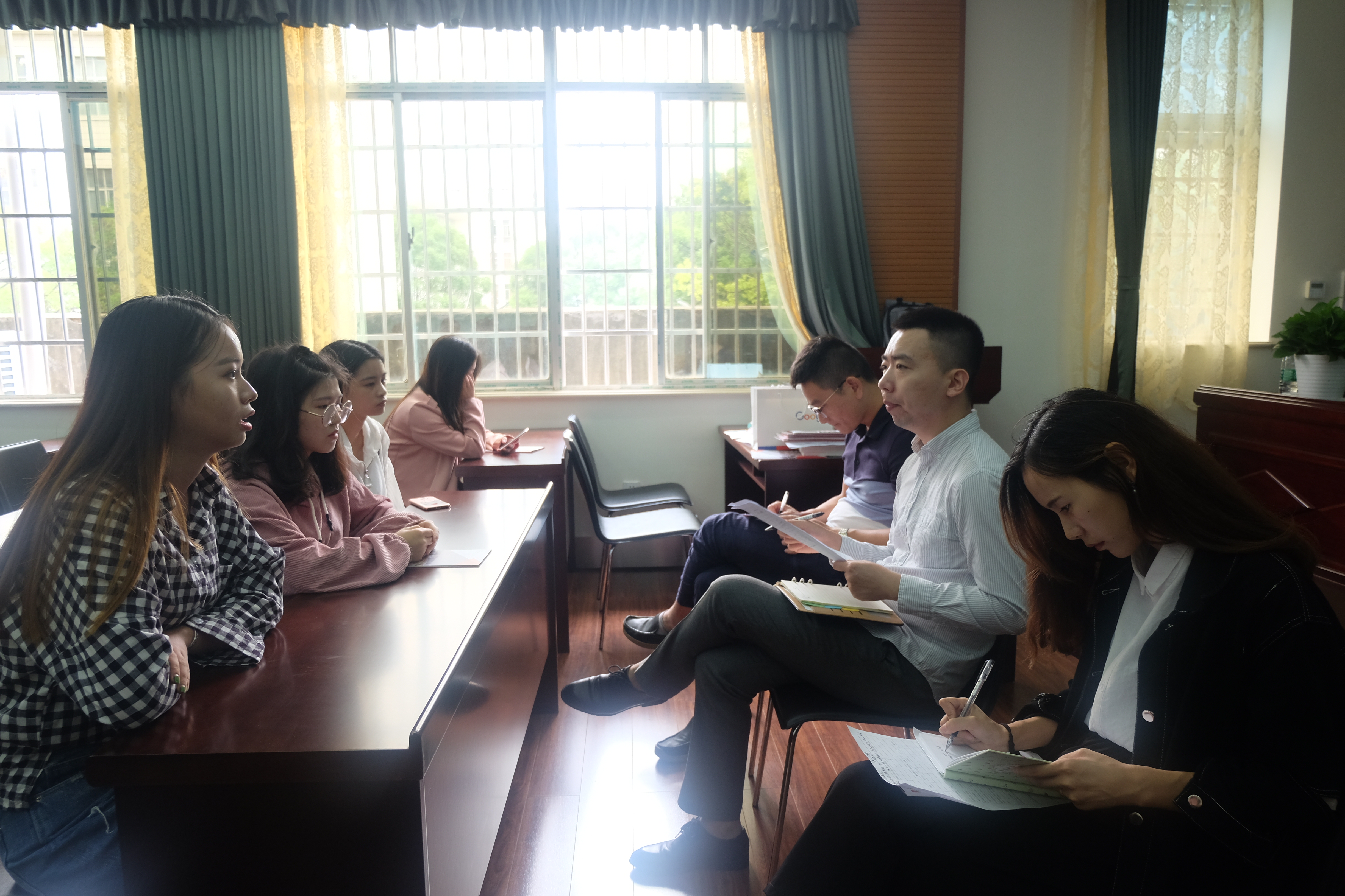 会后,招聘会面试于1308会议室举行。面试现场,负责人就“自我介绍”、“大学期间的表现情况及兴趣爱好”和“参赛获奖情况”等内容向参加面试的学生提问,并有部分同学与该公司达成了工作意向。(南湖学院文法系/杨奕兮 罗丹 责编/陈绪清)