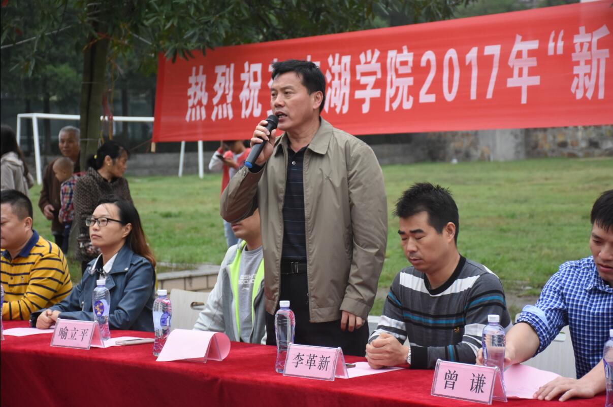校园网讯 10月10日下午,南湖学院2017年“新阳杯”新生师生男子篮球赛在北院篮球场拉开帷幕。南湖学院负责人,南湖学院各系党总支书记、院团委负责人以及各系团总支书记、辅导员出席开幕式。