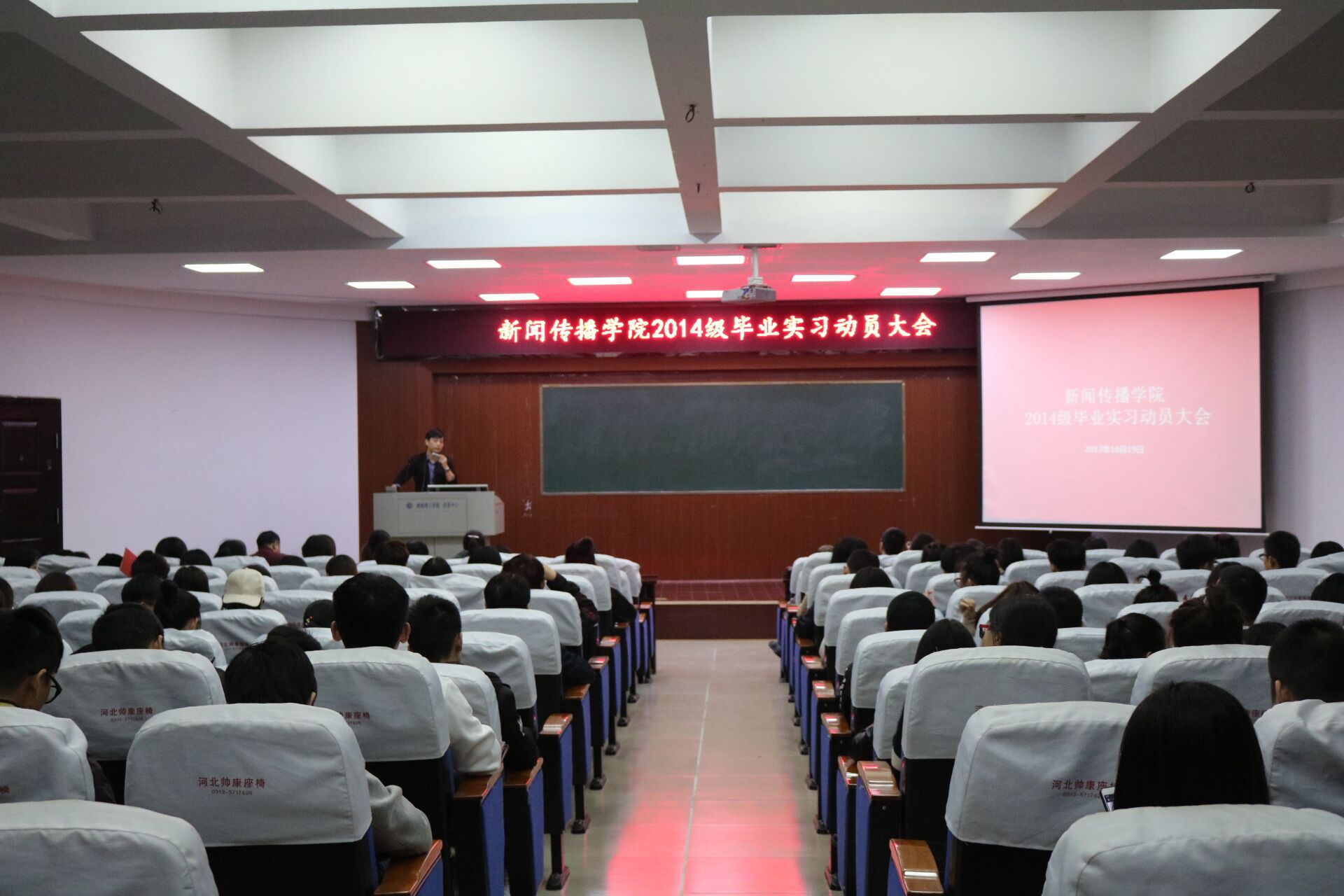 校园网讯 为帮助14级毕业生明确就业方向,布置毕业实习有关工作,新闻传播学院于10月19日晚在6栋报告厅召开14级毕业实习动员大会。该院负责人及教研室主任出席会议,14级全体同学与会。