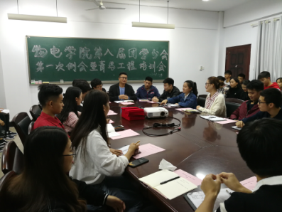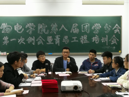 校园网讯 10月24日晚,物电学院团总支在6205会议室召开第八届团学分会第一次全体干部干事例会暨青马工程培训会。物电学院团总支负责人、第八届团学分会全体委员和干事参加了此次会议。