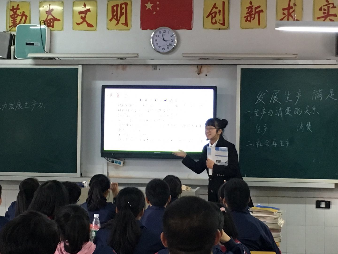 政法学院负责人一行走进课堂先后听了实习生周添亿和陈舜两名同学的讲课。后与在该校实习的全体学生举行座谈。座谈会上,政法学院负责人对周添亿、陈舜两名实习生的授课予以高度评价。他鼓励同学们做到“熟能生巧,巧能升华”,并对如何进行教学设计、如何提高实习教学水平作了具体指导。他要求同学们重视实习环节,努力提高自己的专业技能,为今后走上工作岗位奠定良好的基础。(政法学院 学生通讯员/周安之)