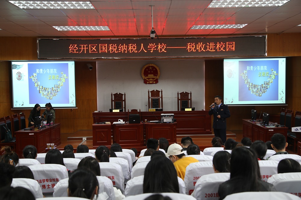 校园网讯 10月24日下午,学院特邀岳阳市经济开发区国税局机关党支部书记、纳税服务科科长吕江平在8号教学楼模拟法庭举办税务知识专题讲座。政法学院2015级法学班学生和南湖学院法学班学生听此次讲座。