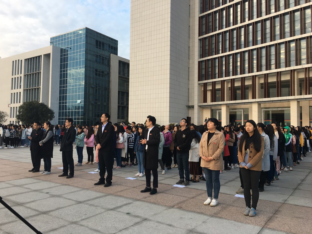 校园网讯 迎着朝阳,11月6日清晨,政法学院在图书馆前举行庄严隆重的升国旗仪式。该学院负责人、学工部相关老师以及该学院全体同学参加此次升旗仪式。