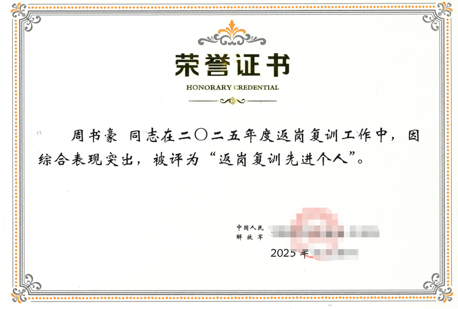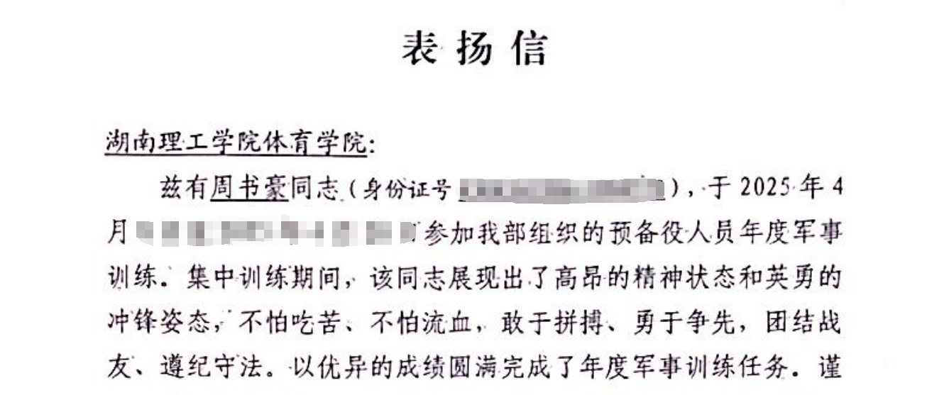 如今重返校园的周书豪,依旧保持着“突击手”的姿态。清晨的训练场上,他带着同学们进行战术体能训练;征兵宣讲会上,他掀起迷彩服展示伤疤:“这道是高原驻训冻伤的,这道是索降训练磨破的——但正是这些伤痕,让我读懂了军人的勋章。”今年4月,他通过层层选拔成为海军陆战队预备役人员,在返岗复训中再获“先进个人”,并获得部队表扬。战友们都说:“老周的手,既能托起钢枪保家卫国,也能托起更多年轻人的军旅梦。”