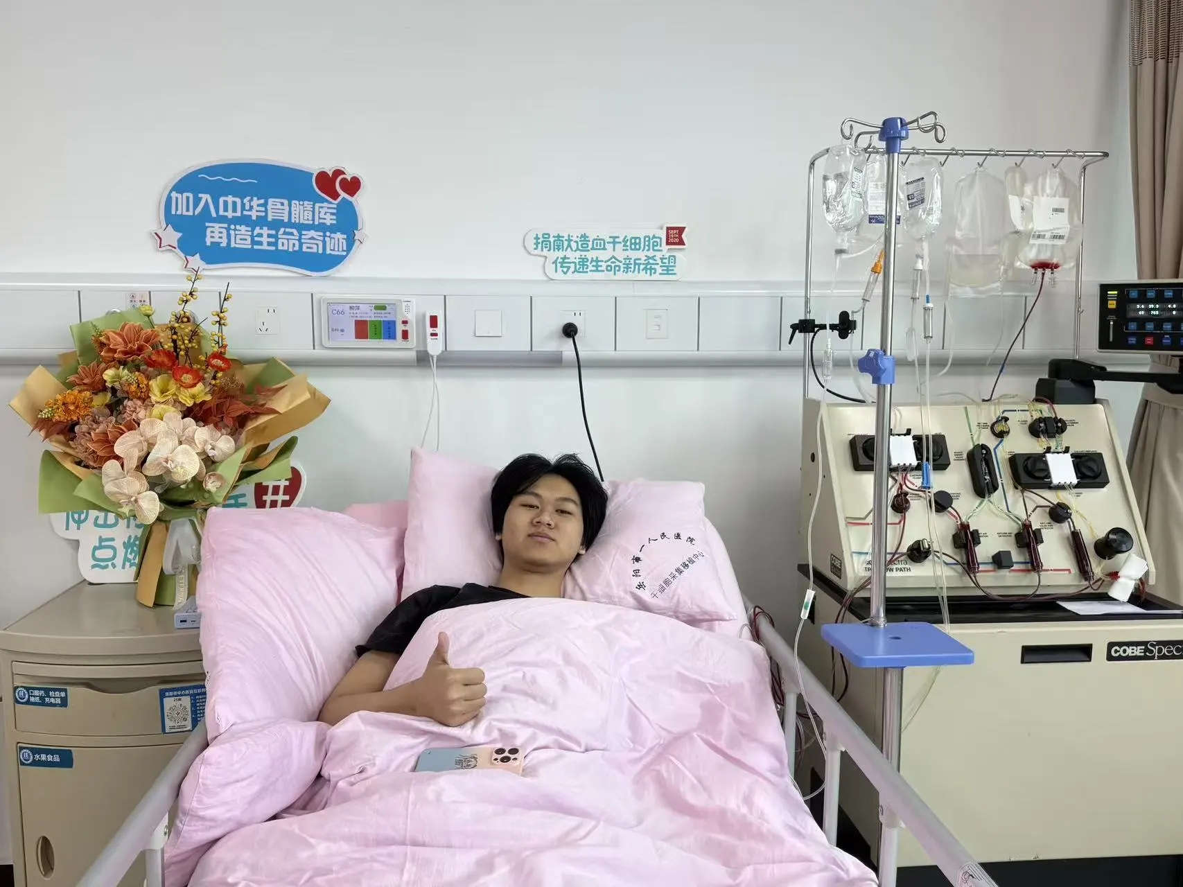 采集当天,晕针的老毛病还是来了——针头扎进动脉的瞬间,四肢冰凉、腹部发热,头晕目眩的感觉阵阵袭来。他怕影响采集,紧紧闭上眼睛,脑海里回想课本上的知识点,硬生生扛了过去。当医护人员告诉他“捐献质量和第一次一样好”时,陈翔只是轻轻点头,默默看向远方。而在远方,守在病房前的一户人家止不住的感恩流泪。