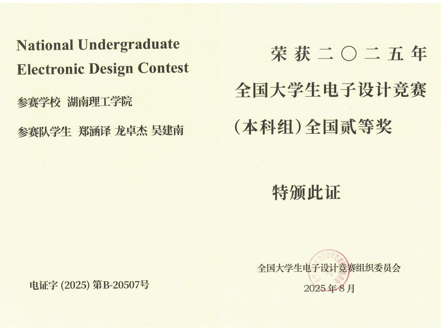 耐心沉淀,精心筹备。郑涵译热衷学科竞赛,视其为提升能力、拓展视野的平台。2025 年,他报名参加全国大学生电子设计竞赛,该竞赛在电类工科领域认可度高,赛题对综合能力要求高,需长时间系统准备与团队协作。郑涵译提前半年筹备,精心组队,制定详细训练计划并明确分工。竞赛四天三夜,团队分工协作,面对复杂电路设计难题,有人推导原理,有人仿真调试,有人优化方案。大家在思维碰撞中拆解问题,轮流值守完善设计,最终攻克技术难关,将创新想法转化为成果。凭借努力与团队合作精神,郑涵译赢得众多荣誉,也为自己和团队树立前进动力。