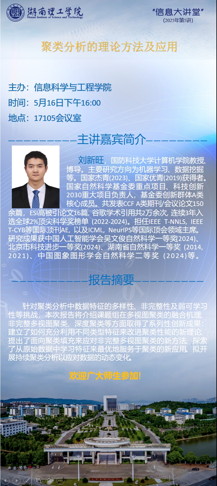 国防科技大学刘新旺教授“聚类分析的理论方法及应用”学术预告