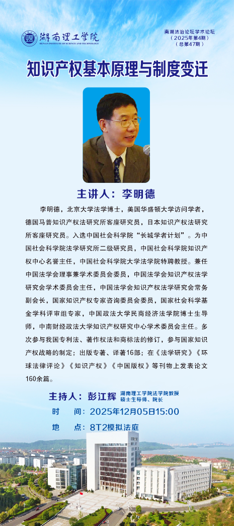 中国社会科学院李明德教授"知识产权基本原理与制度变迁"讲座预告