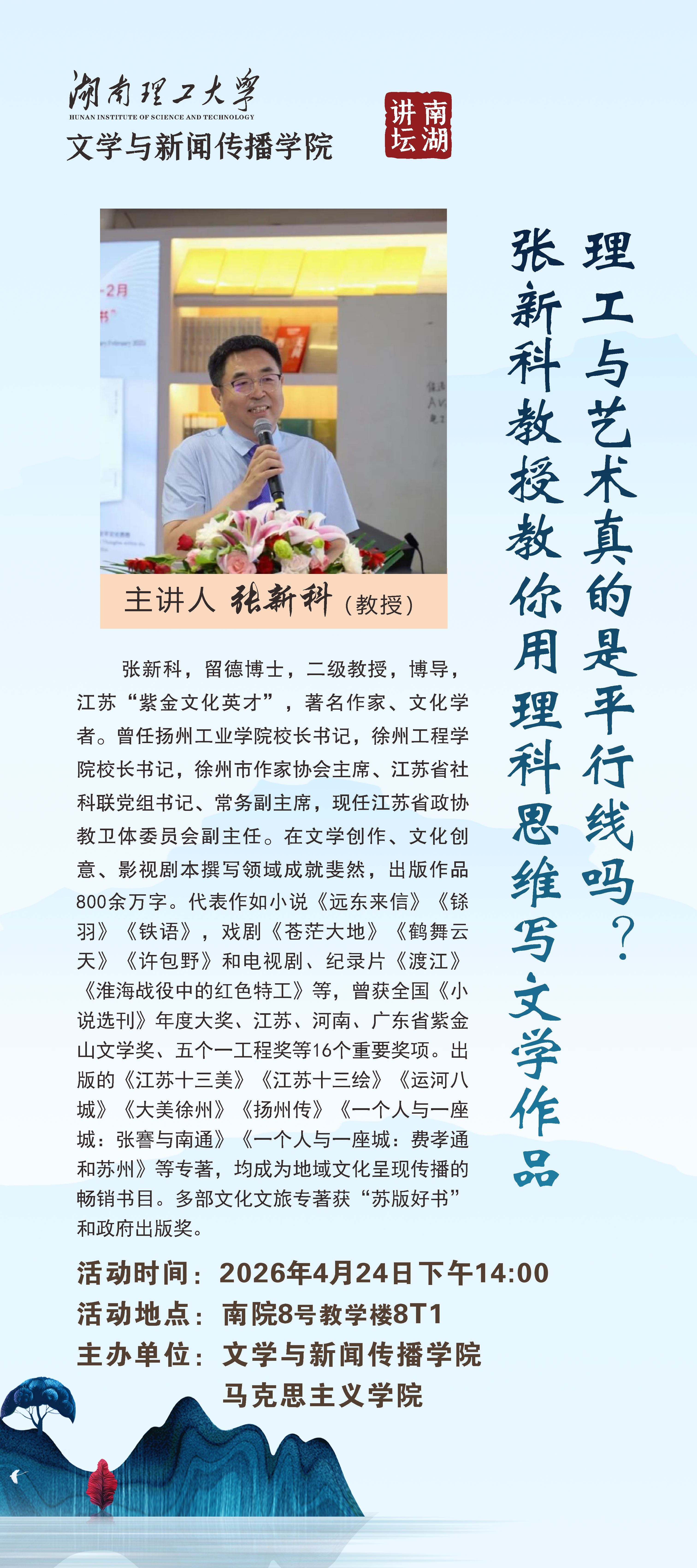 文新学院“理工与艺术真的是平行线吗?张新科教授教你用理科思维写文学作品”讲座预告