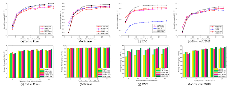 据介绍,该研究设计了一种基于多目标布谷鸟搜索算法的波段选择方法,构建了基于波段信息量和相关性的多目标无监督波段选择模型来降低数据冗余度并提升分类精度。论文针对多目标布谷鸟搜索算法迭代后期易陷于局部最优设计了一种基于种群拥挤度的自适应策略;同时,为了平衡全局探索和局部开发阶段的搜索能力,提出了一种基于分组和交叉的信息共享策略以克服个体信息交互缺乏问题。此外,该研究与邻域分组归一化匹配滤波器和多目标选择人工蜂群算法等目前先进的波段选择方法相比具有更好的效果和鲁棒性;针对四个复杂分类数据集,根据波段信息量和相关性选择的波段子集在KNN和随机森林等分类器上展现了很好的分类精度。