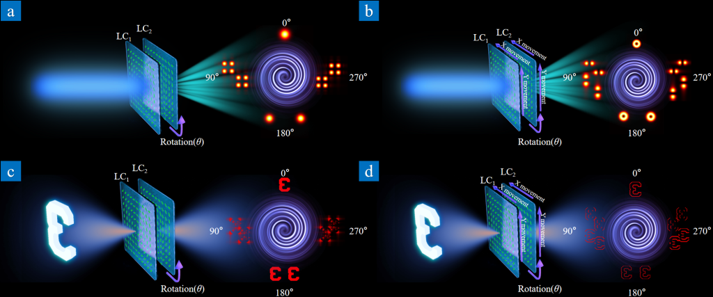全光图像处理技术因其高运算速度与优异能效而展现出广阔应用前景。然而,现有方法普遍存在功能单一、可重构性差等问题,难以满足下一代视觉系统在设备集成与场景适应方面日益增长的需求。针对这一挑战,研究团队提出了一个统一的理论模型,并实验演示了一种基于双片液晶的可重构图像处理计算平台。该平台可在原位/非原位、扭转/非扭转等多种配置下灵活切换,支持包括单/双通道亮场成像、单/双通道涡旋滤波、水平/垂直一维边缘检测、顶点检测以及基于光子自旋霍尔效应的分辨率可调边缘检测在内的八类图像处理功能。