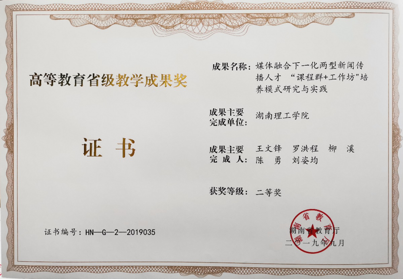5年来,办学层次提升,学院影响明显增强。2018年成功获批新闻传播学一级学科硕士授权点和新闻传播专业硕士授权点,成为湖南省该学科同时拥有学术硕士点和专业硕士点的四个院校之一。2016年成为湖南省广告协会副会长单位。2017年湖南省广告协会教育专业委员会挂牌我院。2018年我院当选为新成立的湖南省新闻传播学会副会长单位,增选为中国新闻史学会新闻传播教育史研究委员会常务理事单位,2019年我院当选为新成立的中国教育发展战略学会教育新闻传播专业委员会理事单位。2019年成功承办“中国认知传播学第六届年会暨国际认知传播学术论坛”“湖南省新闻传播学会2019学术年会暨第一届湖湘新闻传播论坛”。2020年成功承办“新闻传播研究方法与论文写作”湖南省研究生暑期学校。2017、2019先后成功举办新闻传播教育产教融合人才培养高峰论坛、新闻传播学科专业建设论坛。