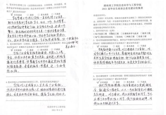 据悉,信息学院长期坚持学生为中心和持续改进理念。在2021届毕业生离校之前,学院分别针对学生干部、毕业生代表、特殊毕业生等学生群体,以各专业年级大会、座谈会及调查问卷等方式,深入了解学生关切的问题,广泛收集意见建议,持续改进人才培养和管理工作,不断提升学生归属感、获得感及幸福感。(通讯员/许诺 徐丹 余滔 责编/田夏)