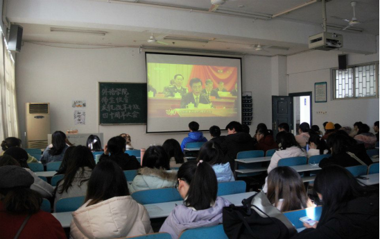 校园网讯 12月18日上午,外语学院组织教师及同学们分别于9202会议室和8404教室收看庆祝改革开放40周年大会直播。大会上,为表彰先进、鼓舞斗志,弘扬敢闯敢试、敢为人先的改革精神,激励全党全国各族人民坚定不移听党话、跟党走,将改革开放进行到底,党中央、国务院授予了于敏等100名同志改革先锋称号,颁授改革先锋奖章;同时,为阿兰·梅里埃等10名国际友人颁授中国改革友谊奖章。观看的师生纷纷为先进前辈鼓掌。大会中,习近...
