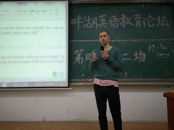 校园网讯 4月9日,外语学院在8T1教室举办畔湖英语教育论坛第四期第二场。此次教育论坛的主题为“乾卦辞:翻译与解释”,由Jonathan Root主讲,马燕妮主持,2016级全体学生参加。Mr.Root对数学与艺术和科学与艺术的交集表现出了浓厚的兴趣,并以牛顿发现万有引力定律为例诠释这种交集。他解释了“乾”与和它相联系的卦辞“元亨利贞”,并且讲述了在《系辞传》、《彖传》与《道德经》中与它们相关的本质。在提问环节中,学生积极...