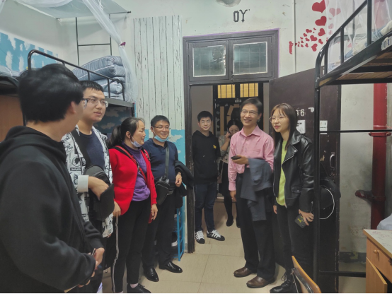 校园网讯 为了进一步了解20级新生的宿舍生活情况,提高学生们的安全意识,9月23日晚,数学学院党委书记孙明保、党委副书记易政群、20级辅导员徐笑天、各班班主任及班主任助理走访了新生寝室。进入寝室后,孙书记向新生同学们了解宿舍生活情况,询问同学们日常生活中遇到的问题并给予了生活建议。此外,易书记叮嘱同学们要时刻注意寝室安全用电问题,同时要注意保持寝室的整洁。通过此次走访寝室,加进了各位领导老师对同学们宿...