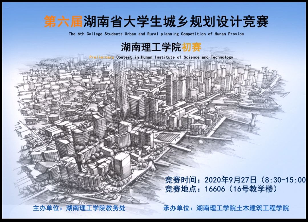 校园网讯 9月27日上午,土建学院于16605、16606教室举行2020年城乡规划设计大赛。土建学院相关专业老师担任评委,来自城乡规划专业的81名学生参加本次竞赛。竞赛以“共生、共享、乐活”为设计主题,考察学生解决城乡规划设计实际问题的能力,促使学生提升规划快题设计的思维表达能力,培养学生的创新精神和创新能力。据悉,竞赛评委将依据《湖南省城乡规划快题设计比赛章程》对参赛作品进行成绩评定,同时选拔优秀参赛选手参加...