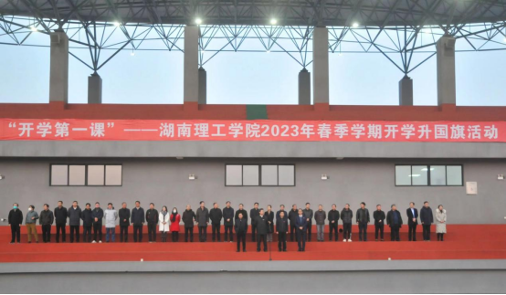 校园网讯 2月20日上午,为进一步加强学生爱国主义教育,上好“开学第一课”,湖南理工学院于南院田径场举行2023年春季学期开学升国旗活动。外语学院党委书记王敏、院长汤卫根、党委副书记石红芳、副院长宋以丰、副院长杨稼辉、全体辅导员参加,2022级全体学生参加。升旗活动进行中外语学院师生参加升旗活动升旗活动第一项,湖南理工学院全体师生面向国旗台升国旗,奏唱国歌,行注目礼。升国旗进行中升旗活动第二部分,由来自机...