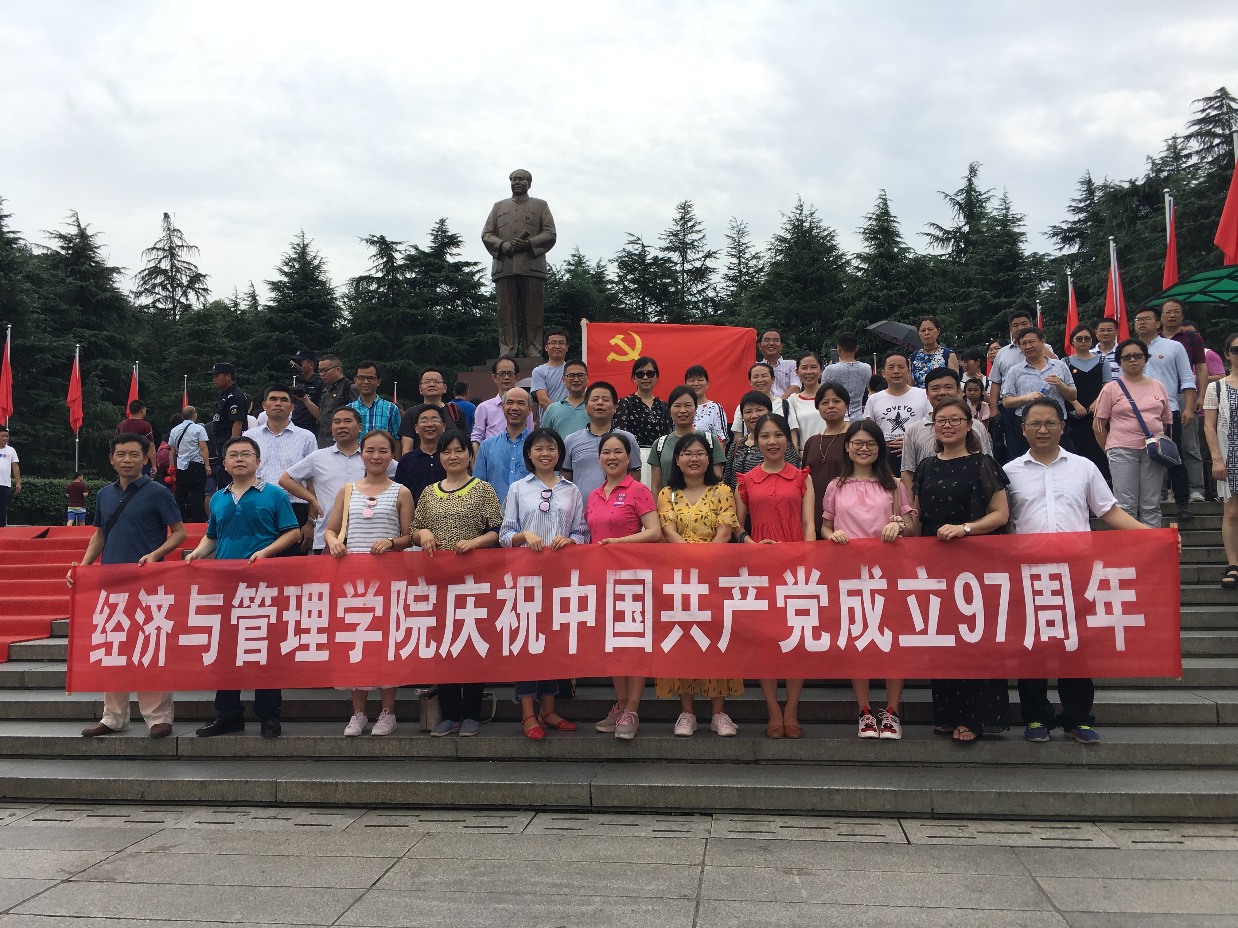 为纪念中国共产党建党97周年,提高党员的党性修养,加强基层党组织建设,6月30日,经管学院党总支组织党员教师前往革命圣地韶山——毛泽东同志故里,开展“缅怀伟人·重温誓词”主题党日活动。党员教师们循着领袖的足迹,从毛泽东故居到韶山水库,再到滴水洞,缅怀老一辈无产阶级革命家密切联系群众的优良作风,接受这次革命传统教育。老师们在参观毛泽东同志故居时,追寻伟人青少年时代的生活轨迹;在毛泽东铜像广场前,瞻仰伟...